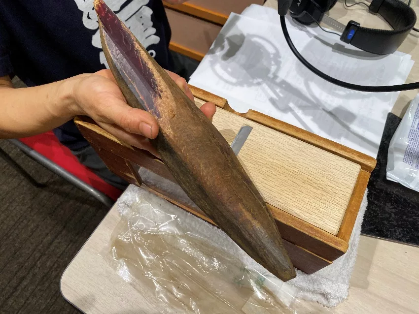 そんな鰹節の伝道師・永松さんに、目の前で鰹節を削っていただきました。鰹節は、鹿児島県枕崎市の金七商店の「本枯節」だそう。