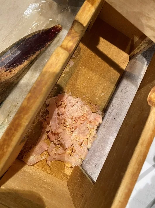 「キッカケは今から12年前、私が24~5歳の時。それまでは夜遊びが大好きで。その中で、福岡の祖母の家に帰った時、おばあちゃんがいきなり戸棚から鰹節を削る箱を取り出して、『これは亡くなったおじいちゃんが結婚した時におばあちゃんにくれたんだよ』と教えてくれて。そこから削ってもらったら、今までの鰹節とは全然違って。その時の鰹節の香り、おいしさがもう格別過ぎちゃって。その味もそうなんですけど、何よりもおばあちゃんの削る姿がステキで。今までやりたいことは何もなかったのに、同じ女性として私も年を重ねた先でこういうステキな人になりたいなと思ったんです。それで東京に帰ってきてからも、私生活の中で鰹節を削ってというのが始まりです」