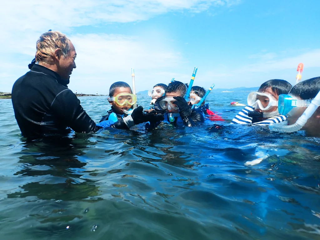 「毎日のようにシュノーケリング体験などを行っていました。参加したご家族やお子さんは、海の中を泳いでいる魚や生き物を自分の目で直接見て触れることで、できない人でもできるようになっちゃう、それを見たいために体が自然に動いちゃうようになりますね。また、シュノーケリングだけではなく、自然のことを紐解くエコツアーでは、小学生や中学生、首都圏から来る子どもたちも多いのですが、ただ散歩しただけでは分からないことを伝えています。触れてみたり、匂いを嗅いだり、直接自然に触れることで、発見があるのではないかと思います」