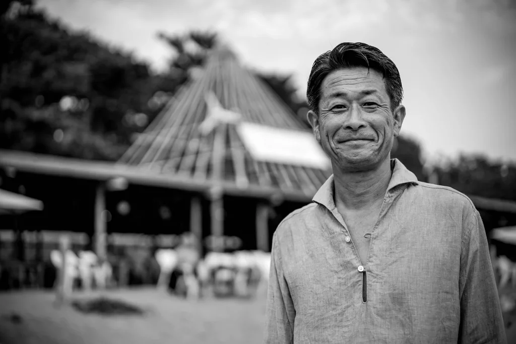 「必ず冬山に入って竹を切り出すんですね。湿度が低くて、雨が少ない冬だと、水分含有量の少ない竹となり、建築資材として優れているからです。その竹は、しなやかさと強さと軽さがあります。海の家は海の目の前じゃないですか。ですので、台風が直撃した時も、その竹のしなやかさで自然の力を逃がしてくれるという。そんな竹は、年間300本ぐらい新しいものを取りに山に入っていますが、我々は使い終わった竹も無駄にしないように、全て炭にして耕している畑に使っています。竹は本当に成長が早いので、常に人が手を入れていないと良い竹林にならないんですね。だから、手前みそですけれども、良い竹林にも、里山の再生にもなるし、我々は建築資材としても使えるというサイクルができ上がっています」