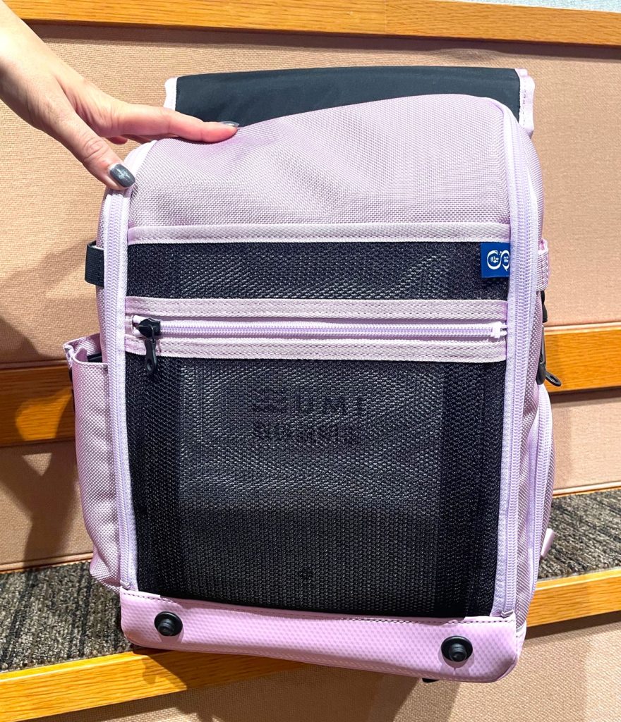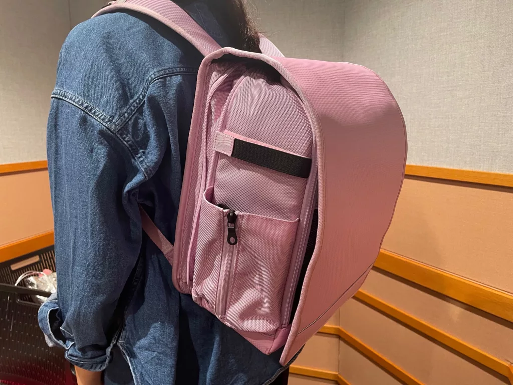 そのバッグの中で、ピンク色のものはランドセル。ランドセルというと重いイメージもありますが、持ってみるととても軽いのだそう。