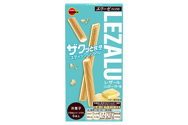 「レザール」は、小麦、とうもろこし、ライ麦ベースの穀物の風味を感じられるザクッと食感の生地で、塩味が効いたバター風味のチョコレートをサンドした3月の新商品です。